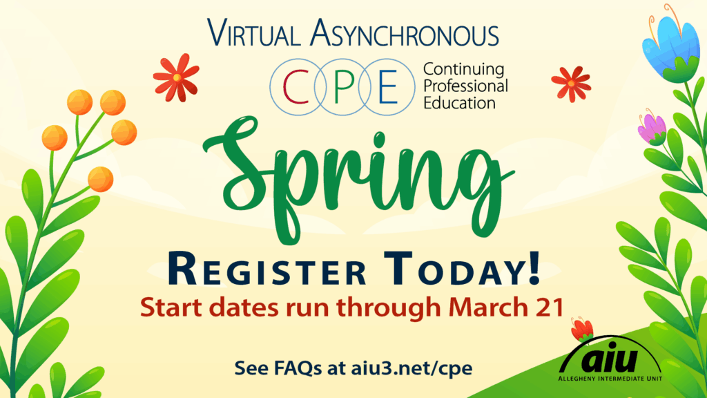 Transforming Lives Through EducationWe are an educational community that advocates and advances equitable opportunities for all learners. Professional Growth Explore opportunities for educators Special Education Find special education supports and services Student Support Services Explore opportunities for students Family Needs & Support Supporting the growth of healthy families Calendar Check out all upcoming events! Spotlight Fall 2025 AIU Connections Early Childhood Education Educator Induction Program Community Resources Latest News & Events PBIS Student Summit empowers student leadershipThe AIU’s Training and Consultation (TaC) team recently hosted its annual PBIS Student Summit, bringing together 120 secondary students and 96 elementary students from across Allegheny County. Students participated in […] View All News Upcoming Events Dec 12 8:00 am - 5:00 pm Workshop DLM: Plot the Path to Propel Progress Dec 16 8:00 am - 9:00 am Executive Function 101 Dec 16 8:30 am - 9:30 am Emotional Support Teacher Training Dec 16 8:30 am - 3:30 pm Writing Across the Tiers: How to Provide Whole Class, Small Group, and Individual Supports Dec 17 8:30 am - 9:30 am Secondary MTSS Networking and PLC Meetings View Calendar View All Events
